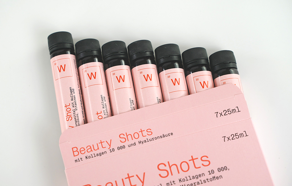 BEAUTY SHOT ist ein funktionelles Nahrungsergänzungsmittel von W22 im praktischen Liquid-Shot-Format. Die Rezeptur kombiniert Kollagen mit ausgewählten Vitaminen und Mineralstoffen und lässt sich einfach in die tägliche Routine integrieren.